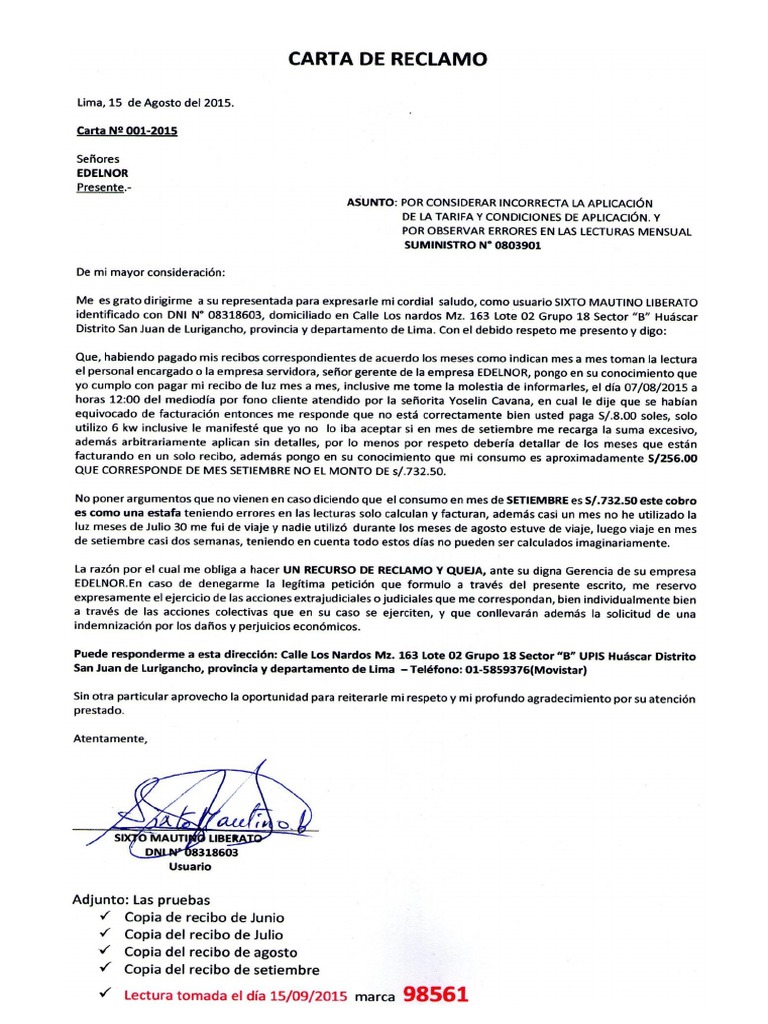 Por la presente, acusamos recibo de su comunicación relativa a la denuncia planteada por el cliente de referencia, sobre el padecimiento. Cómo usar un modelo de carta de queja para resolver problemas con. Recursos a su alcance para presentar un reclamo o queja ante una. Señor Raúl Henríquez Gerente de.
