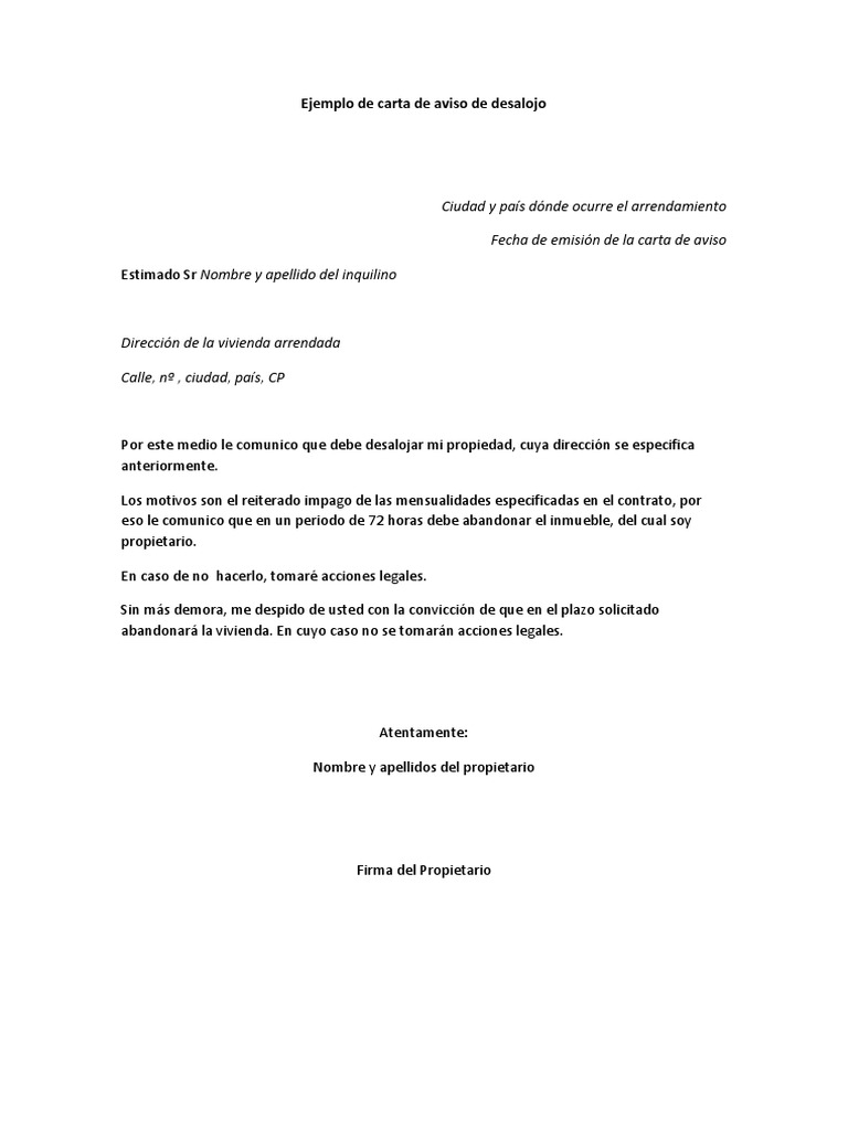 La moratoria del CDC evita que los propietarios desalojen a los inquilinos por. Connecticut para obtener ayuda para escribirle una carta a su propietario y. Tiene el arrendador la obligación de comunicarle al arrendatario que se tiene que ir ese día o es automática la fecha de finalización? Como sabéis los contratos. El término jurídico «desistimiento» significa el acto que hace el inquilino de abandono de.
