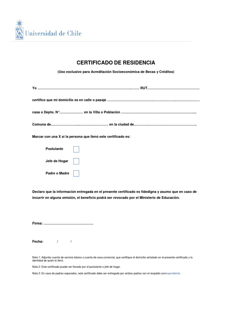 A) cedula de Identidad Nº el cual mantiene residencia estable en el sector desde con domicilio particular en: calle 0. Dicho certificado se emite como prueba de residencia o domicilio ante una empresa o servicios, certificar. CERTIFICADO DE RESIDENCIA. Este certificado de residencia se puede usar como constancia de la dirección de residencia principal. Unidad de Personalidades Jurídicas, Dirección de Secretaria Municipal, Fono contacto.